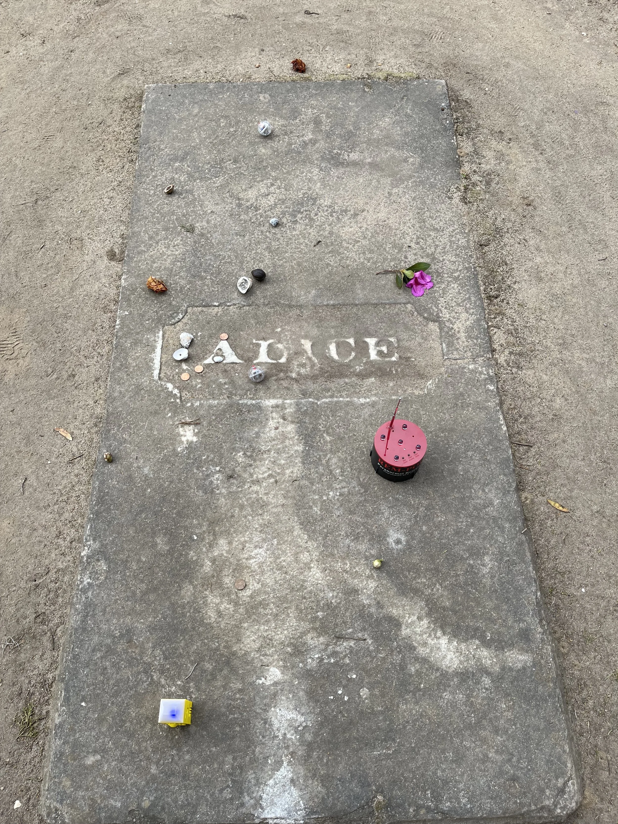 Today is our tour of Georgetown. One of the first things we did was to wander the back roads of Pawleys Island. SW was in search of a grave that as a youth, they would visit and tell ghost stories. Low and behold he found it on the very first attempt. The grave is located at the All Saints Church. The area has changed some since SW was last there but he found it. After we parked we crossed the street and entered the cemetery. The story goes that Alice’s grave is a simple marker. We scattered and based on SW’s clues we searched for about 15 minutes. In the distance I noticed 2 females and a male standing and talking. There was also a camera on a tripod. Not wanting to be obtrusive, I wandered in a different direction. A few minutes later SW had spoken with the people and said he had found the grave.