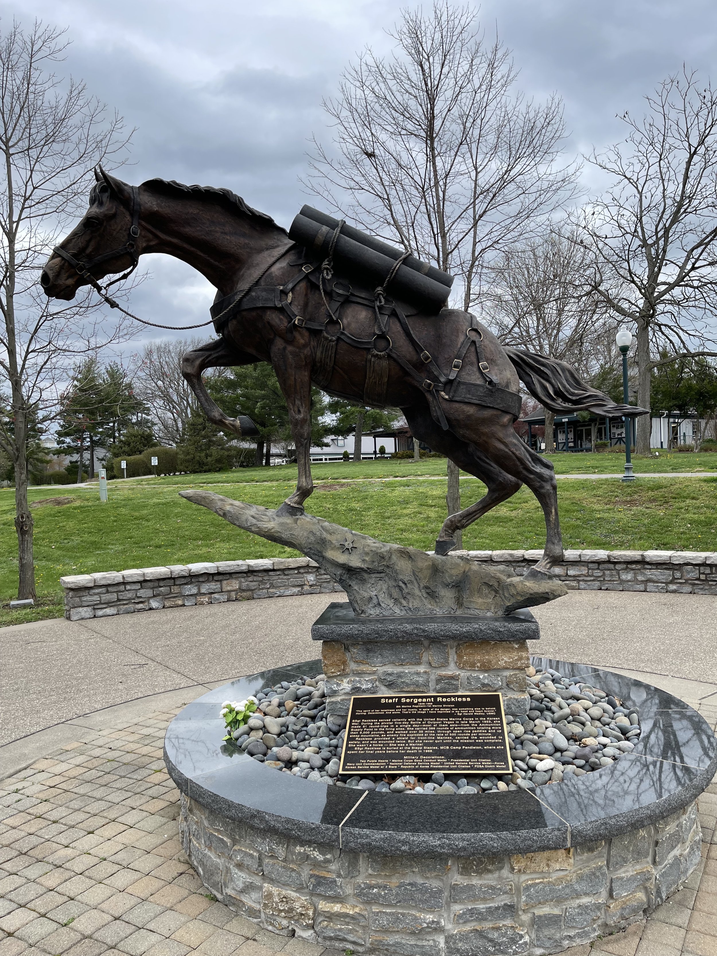 I saved the best for last. My favorite was the statue and story of Staff Sergeant Reckless, a Marine. I’ll let you read the story. It is on the plaque in one of the photos. True hero!! PICTURES