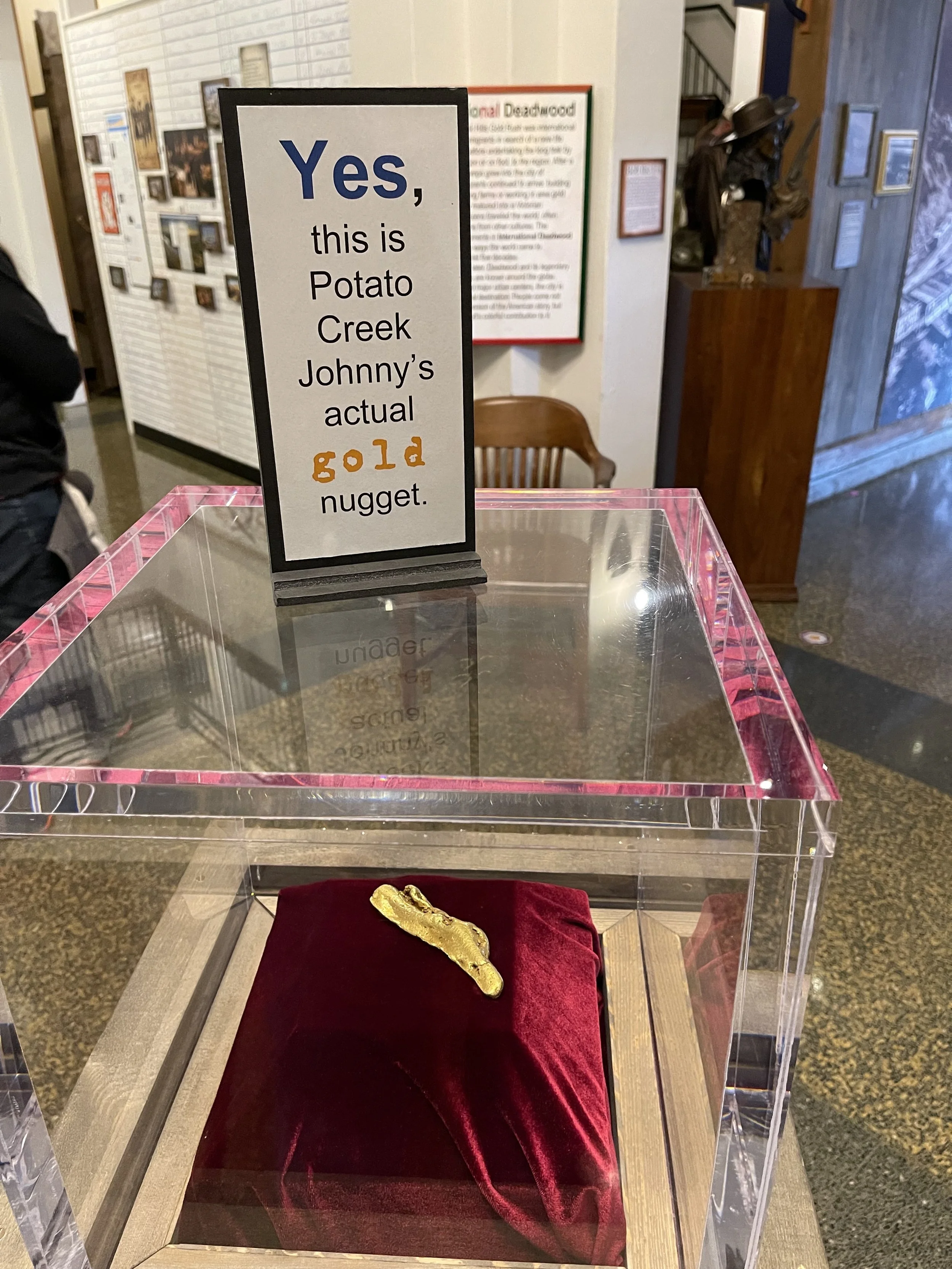 After we got back we took another walk for about three blocks to the Adams Museum. It was a collection of items the Adams Brothers collected over the years. Most dealt with Deadwood’s history. They also had the original gold nugget discovered by Potato Creek Johnny. From there we decided it was lunch time so we walked about 3 more blocks to Jacobs Brewhouse for a bite to eat. We ate our late lunch and walked back to the parking garage.