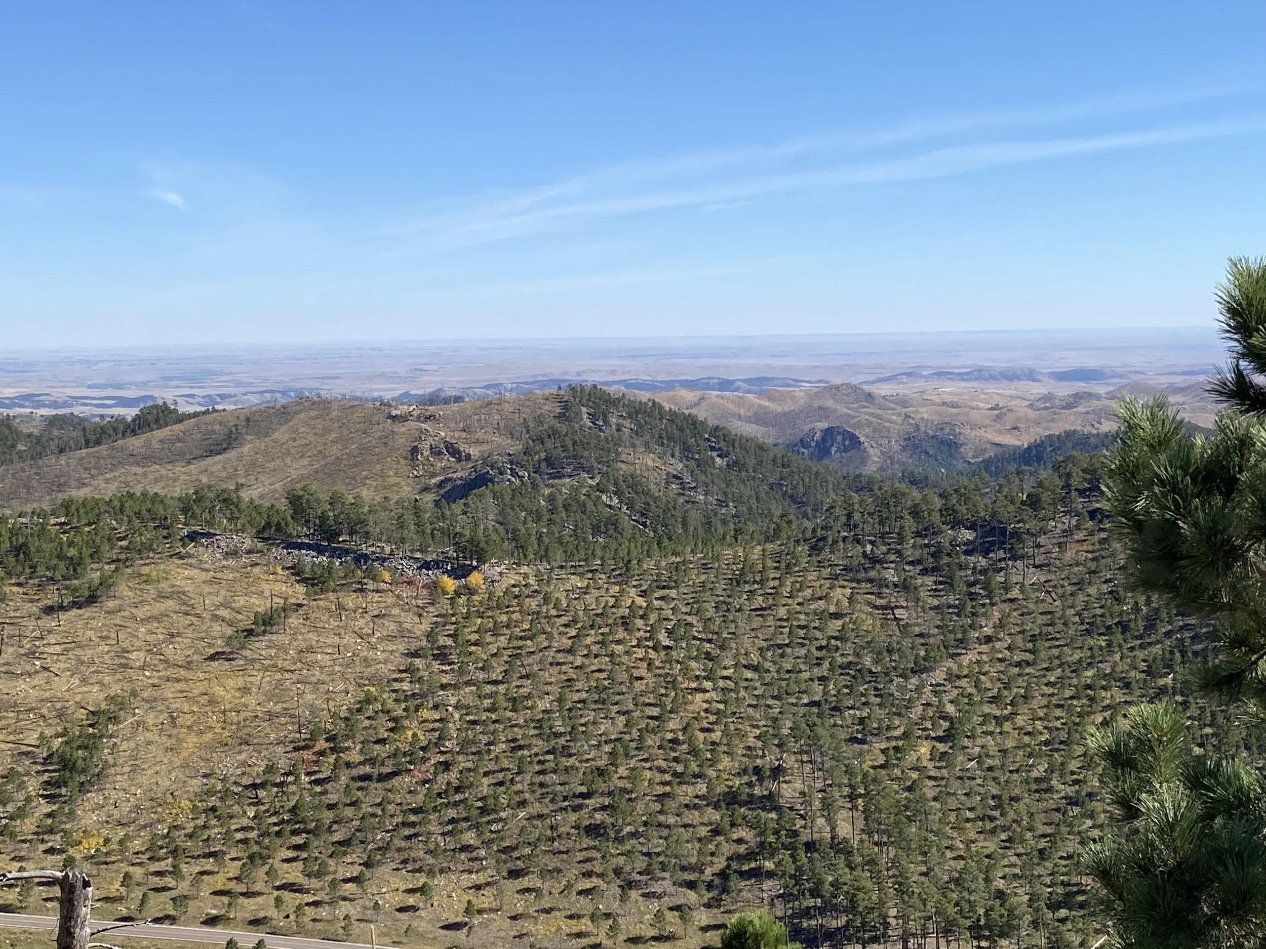 We only had a couple of items on our list today. The first order of business was lunch at Burger & Bun. We went there our first week here and absolutely loved it. The only problem was that it is only open 11:30 AM to 2:30 PM. It is very small and seating is very limited. We wanted one last bison burger before we leave town. It was as awesome this time as the first time. We had purchased some wonderful breakfast link sausage and thought we had gotten it from the meat market in Hot Springs. So we wanted to get some more and headed to Hot Springs. Along the way, we passed by the Coolidge Mountain Lookout,. It was an interesting drive. We wound our way up a narrow gravel road on the side of a mountain. There was just enough room for two cars to pass. Once we got to the top, the views were well worth the drive. Looking north you could see the Crazy Horse Memorial. Someone said you could see Mount Rushmore also but I could not. Looking east you could actually see the Badlands. We descended Coolidge Mountain and went on our way to Hot Springs. It was a nice drive and we got to see some wildlife. We got to the meat market and their stock was very limited. They explained they were between seasons. Additionally, they haven’t carried link sausage in over 5 years. It must have been Dakota Meats in Rapid City. While in Hot Springs we stopped at 2 Cows Creamery for some ice cream. It was okay. We headed home.
