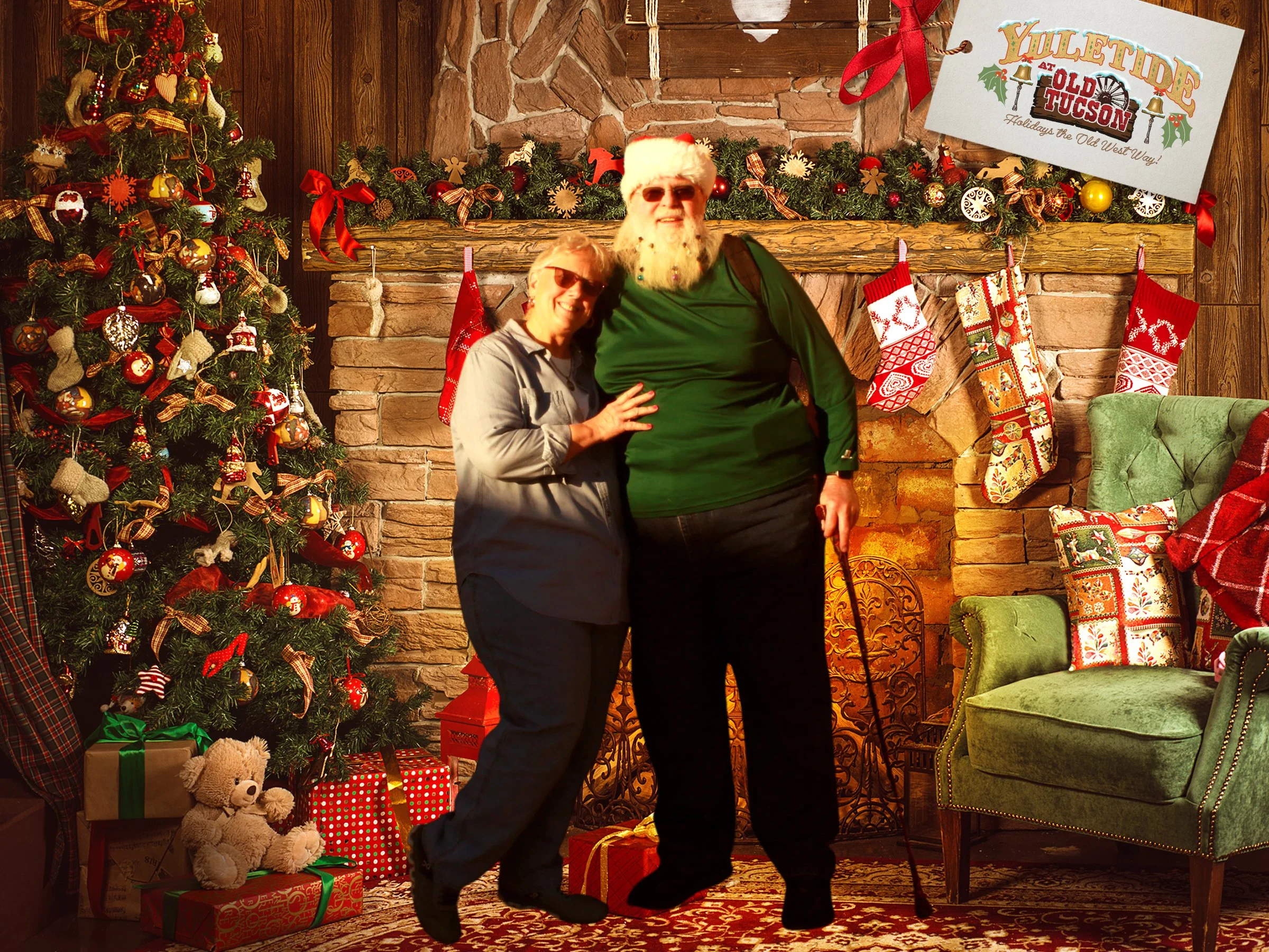 Overall we did not expect to stay as late as we did. We were both exhausted and hurting some but we had a fabulous night. I should mention at this time that I had decorated my beard. About three years ago, I ordered a kit that had blinking lights and jingle bells that you can attach to your beard. So I decorated my beard and wore my Santa hat. I got several compliments and people loved it. I even had one lady wanted to take a picture of me. So I let here. On our way here I had to take a couple of pictures of Tucson Mountain. I thought it was so neat with the cacti growing on the mountainside. This was definitely a memorable Christmas Eve.