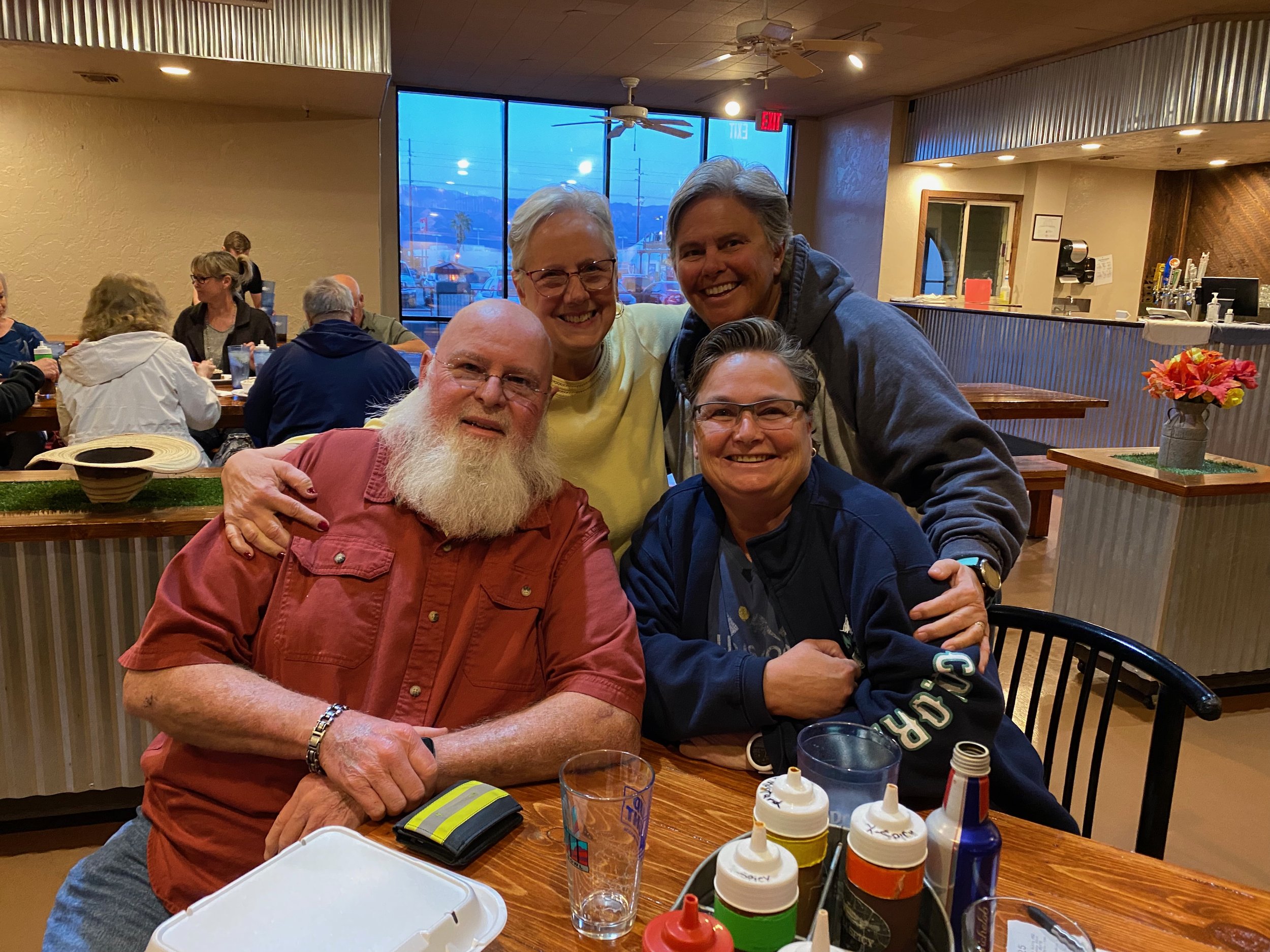 Last summer while in Fort Welikit, we met a couple of campers from Colorado. They were in the site between ours and Belinda and Cathy’s. It just so happened that the 6 of us would sit around the campfire with a beverage or two and talk. That couple was Chris and Mitch. As we talked they said they were going to winter in Tucson, AZ. Tucson is only about an hour away. We exchanged numbers and made plans to get together when they got into town. Today is finally the day. Schedules have not permitted us to get together but it’s on now. We had an appointment in Tucson and afterward we met them at Holy Smokin Butts BBQ. Q and Brew. For me it doesn’t get any better. It was great to see them again and to catch up a little. They chose the place and did an excellent job. Holy Smokin Butts offered a sampler platter with brisket, tritip, chicken, ribs, sausage, turkey, and pulled pork. It also came with 2 sides. It was large enough for Nancy and I to share and we even brought a little bit home with us. The local brew was great and the smoked and BBQ meats were fabulous. Tender and juicy and very flavorful. We all enjoyed a great meal and great conversation with our friends. We made plans for 2/19 that they would come down to the park and I will do some cooking for them. We are also planning on seeing them later this year when we go to Colorado.
