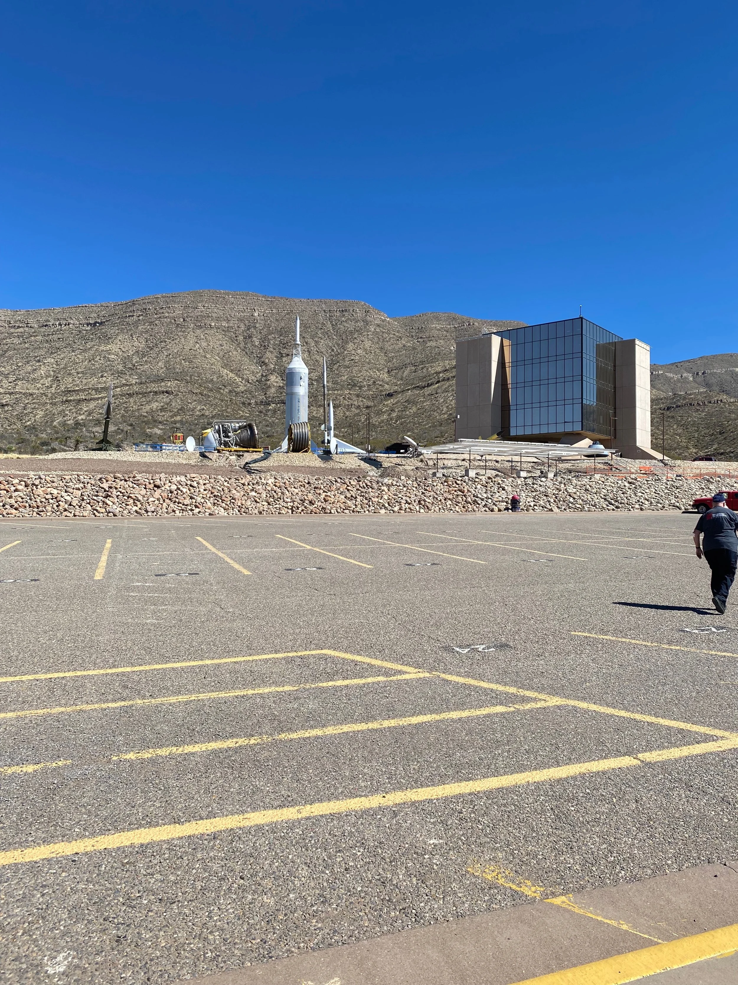 Today is a travel day to head to Roswell. We have been in touch with Patty and will see her and Tom at some point this weekend. Since it is a very short trip to Roswell, we decided to check out the New Mexico Space Museum in Alamogordo. It was only 2 miles from our campground and after a check of Google Maps, I decided they had two big parking lots that we could easily get in and out of. So we packed up the RV and hitched up and headed up the hill to the museum.