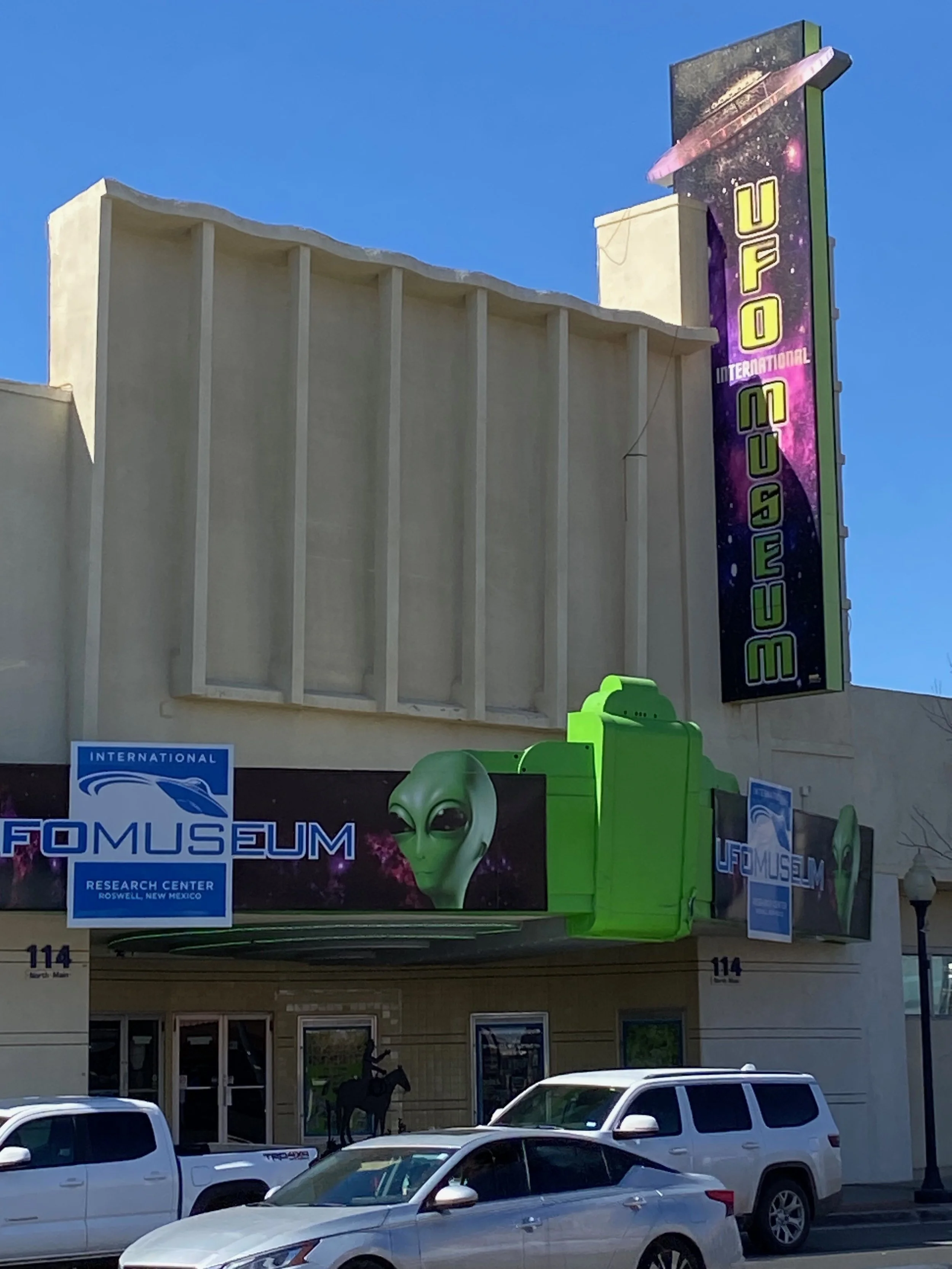 We spoke with Patty (Kaplan Barresi) last night and her and Tom have offered up their services as tour guide. Sounds great to us. They came to pick us up around 10:00 AM. We gave them the 30 second tour of our RV, as they have been RVers. We sat and had coffee and talked for some time. It was decided that our first stop would be the International UFO Museum.