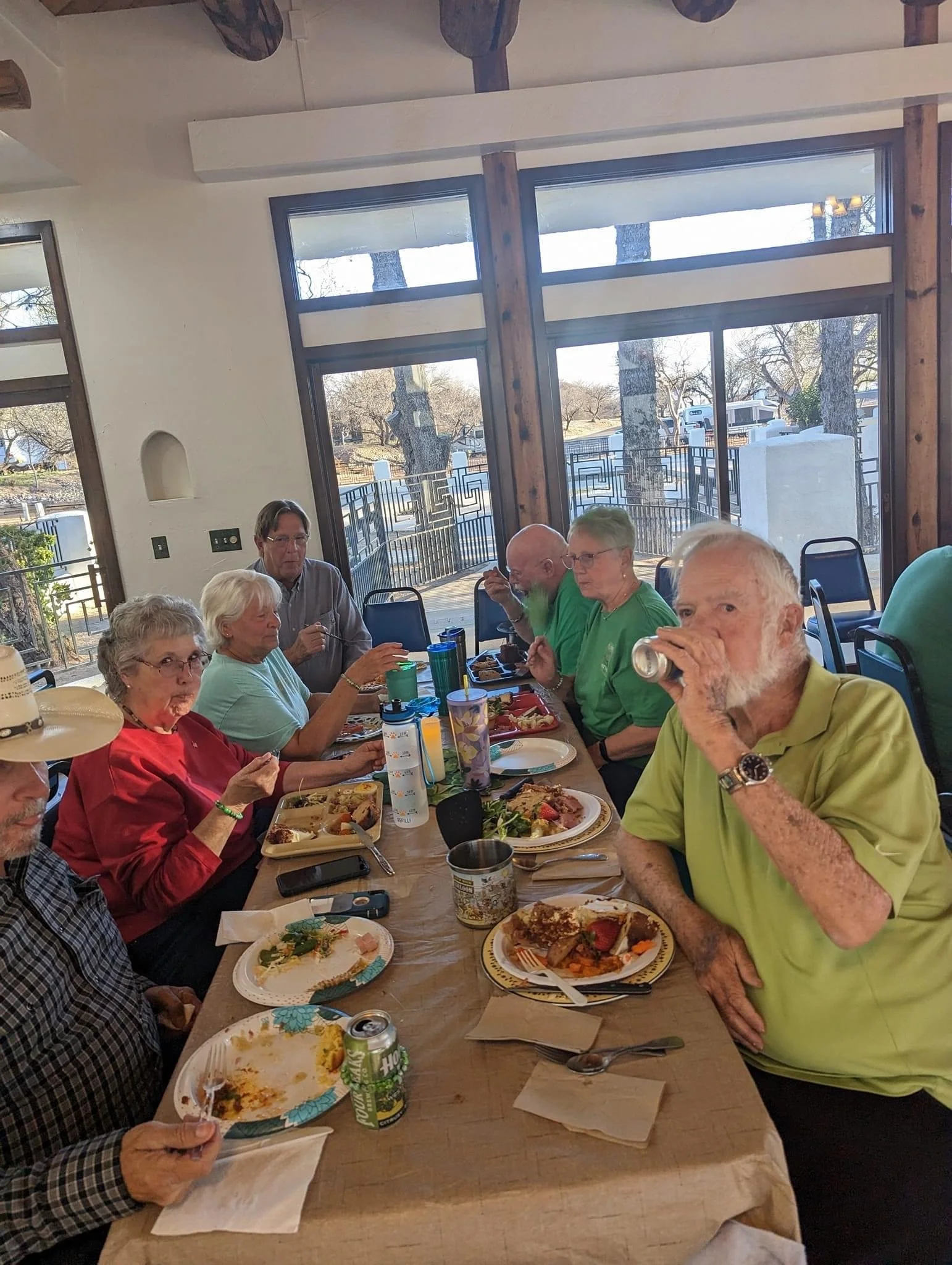 The weather turned bad today. Cooler and overcast with rain later in the day. Chris and Mitch are coming down from Tucson today. We decided that I would make Monterey Chicken on the smoker. I also decided to try an experiment, called Tater Totchos. I modified the recipe a little by adding Ranch Seasoning. Chris and Mitch brought a broccoli salad, some hard seltzer and some Modello Negro. Dinner turned out pretty good and the beer was very good. We talked and had a great time visiting. After eating we decided to play a little Five Crowns. Had a fabulous time. Then we had coffee and peach pie for dessert. Unfortunately they had to leave to get back to their fur babies. We are planning on getting together at least once more before we leave Arizona.