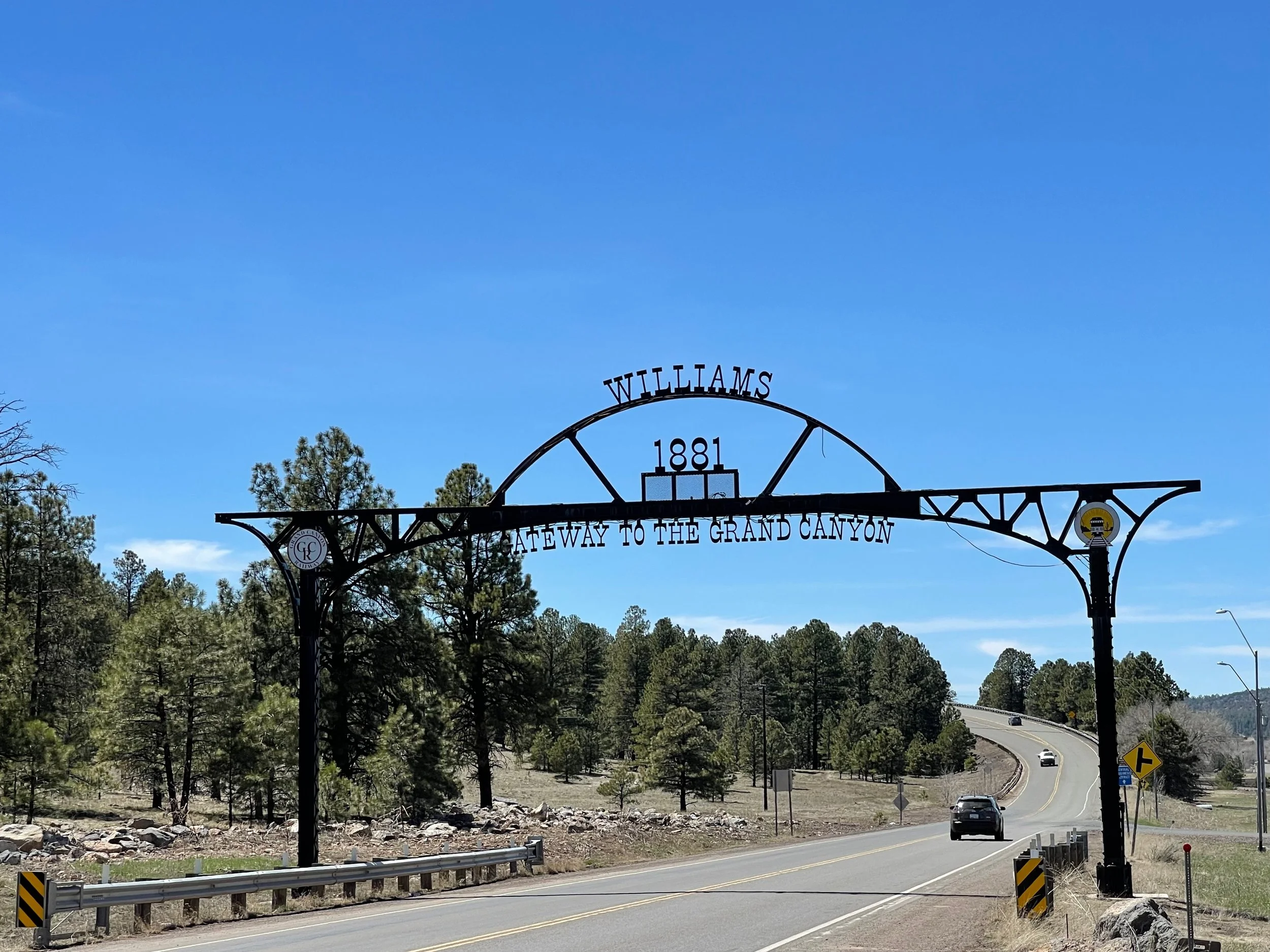 By mid morning we were all up and about. Wayne gets up really early and had walked thru downtown Williams a little and then he and Jen visited the Williams Visitor Center. They came over and we decided to head to Bearizona today. It is a drive thru park with several different wild animals and also a walk around area to see bear cubs, badgers, otters, javelina, and many others. It was a great drive and the animals were very cooperative. After we drove through the park we stopped at the walk around area. We spend a hour or so walking around looking at the different animals and taking a ton of pictures. We also had to stop to get a picture of the metalwork at the entrance to Williams.