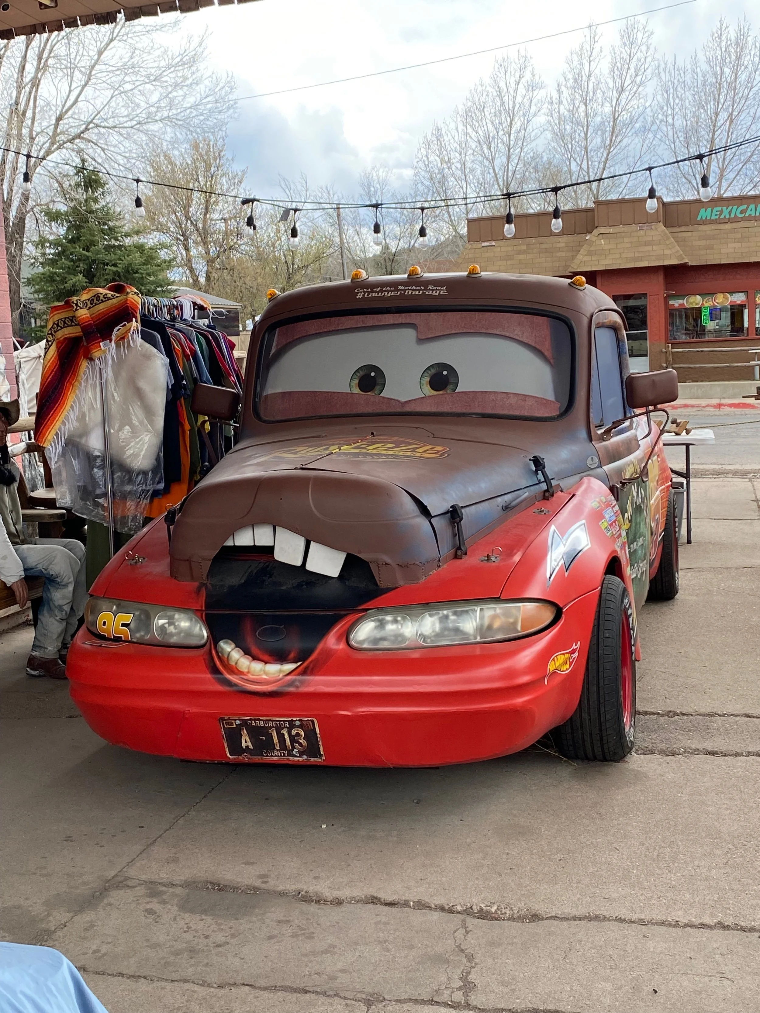 We left Winslow and were back on the road to Grant, NM. Our stop for tonight is the Junkyard on Route 66 Brewery. A Harvest Host. We arrived and got set up. Now it was time for dinner. The brewery/eatery is in a former junkyard. The inside of the building is very eclectic. The dining tables are hoods. The menu tonight is brisket sandwich and a bag of chips. Nancy had a Margarita and I had a F460 beer. It is a double hefeweizen. Very good.