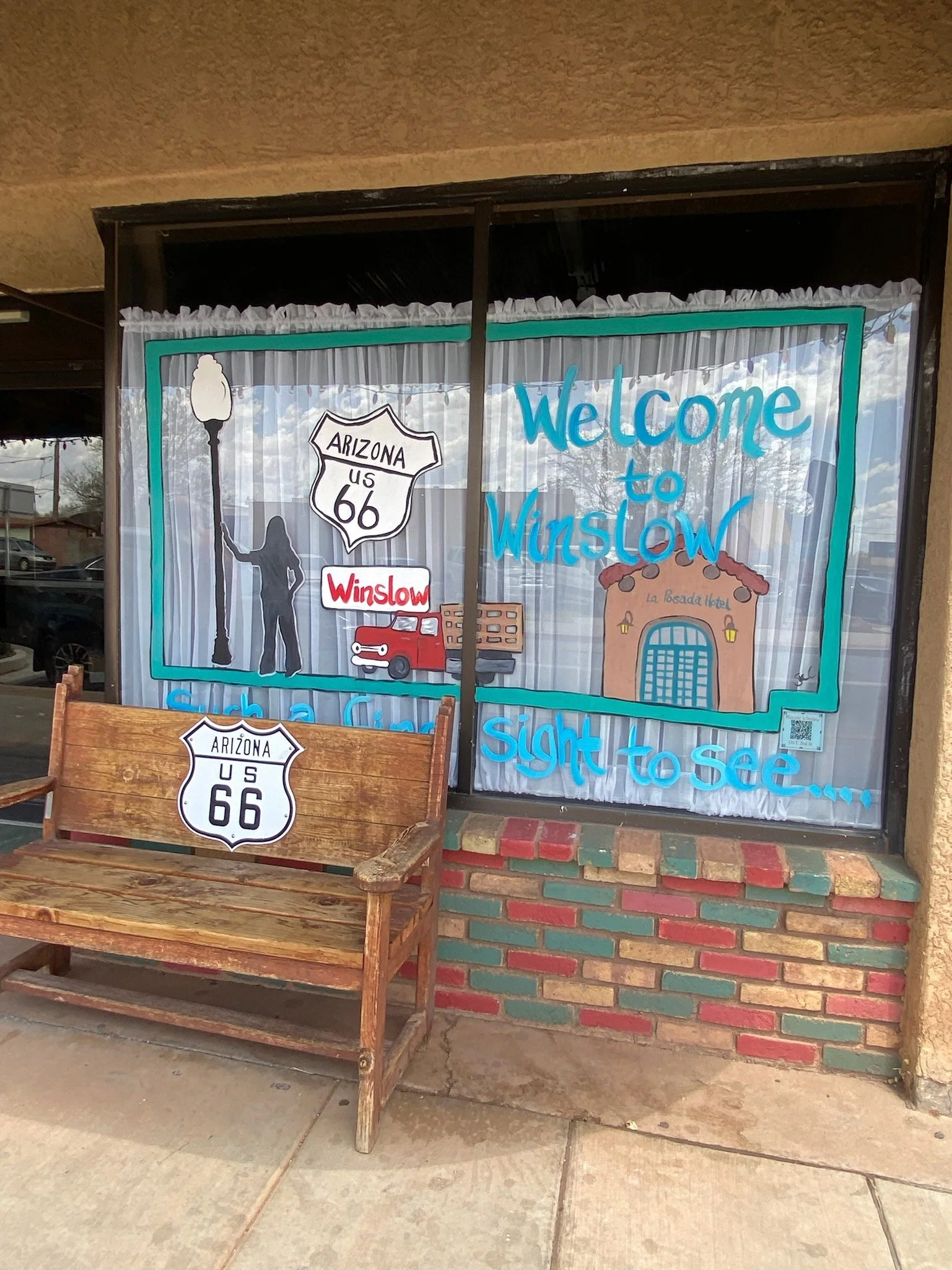 Travel today to get to New Mexico. We had not planned on stopping anywhere but we saw signs for Winslow, Arizona. We decided to pull off of Interstate 40 and found “the corner”. The next step was to find a parking spot, relatively close, and one that would hold a 42’ RV being pulled by a long bed truck. Apparently Winslow thought of everything. About 3 blocks past the corner was a very long lane of parking area. We stopped and walked back to get our pictures and souvenirs from the area. The Eagles’ song “Take It Easy” is what made this area famous. Verse 2: “Well, I'm a standing on a corner in Winslow, Arizona; and such a fine sight to see; It’s a girl, my Lord, in a flatbed Ford; slowing down to take a look at me.” It was a great stop.