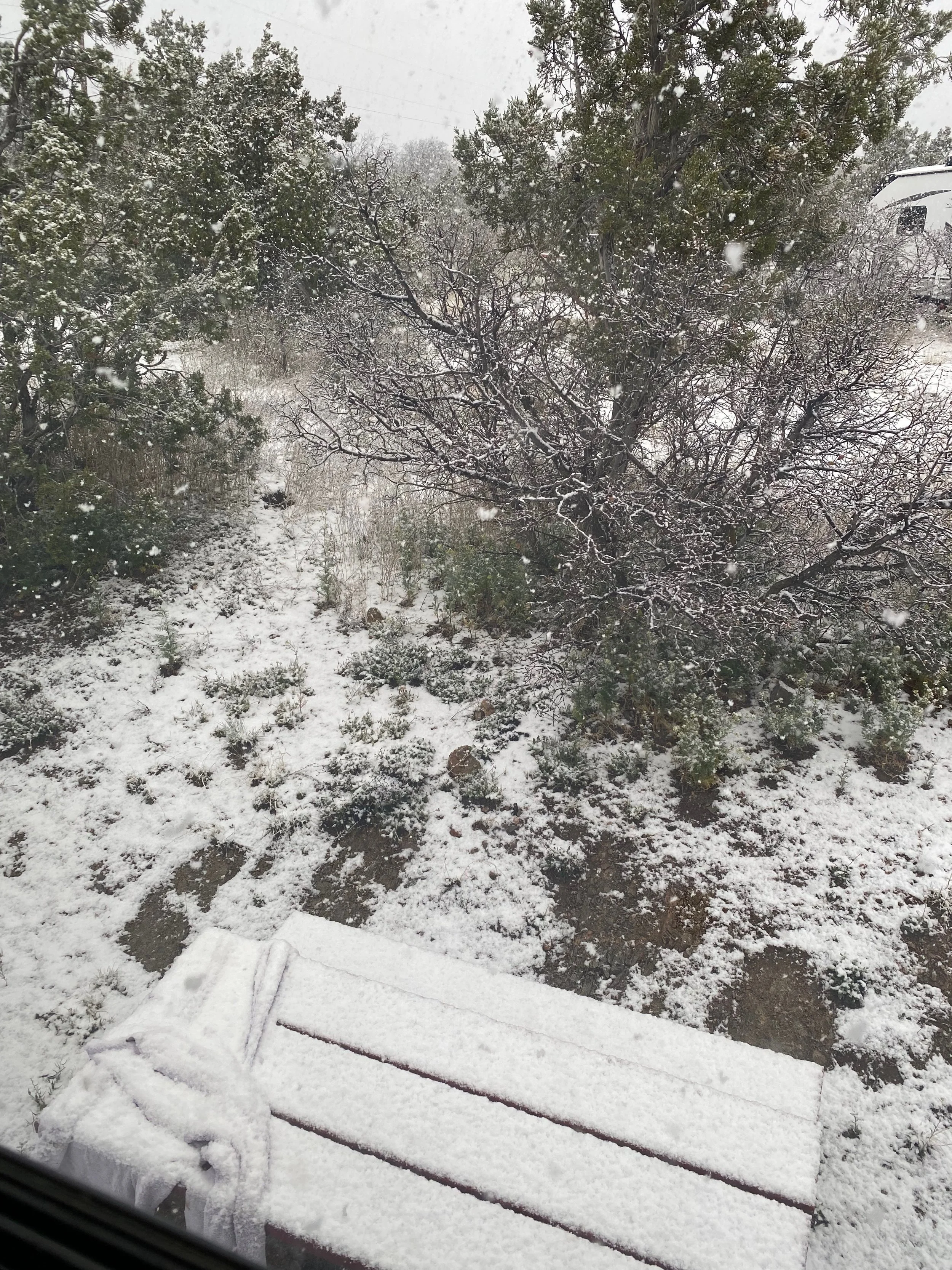 Well today’s plans went out the window quickly. We awoke to a snow covered ground. We have been traveling for about two weeks and just used the snow as an excuse. We stayed in and caught up on our laundry as our next stop would not be a full hook-up.