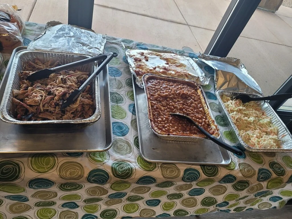 The initial idea was to have the dinner hosted at our site so we could have a campfire. But again it was supposed to rain so we moved it to a room at Camper Services. We supplied pulled pork, buns, cole slaw, and my Boston Baked Beans. Carla and Angel brought a Boston Cream Cake. The hosts showed and a couple of the rangers had other commitments and could not attend. Jasmine, Patrick and Desiree did show up.