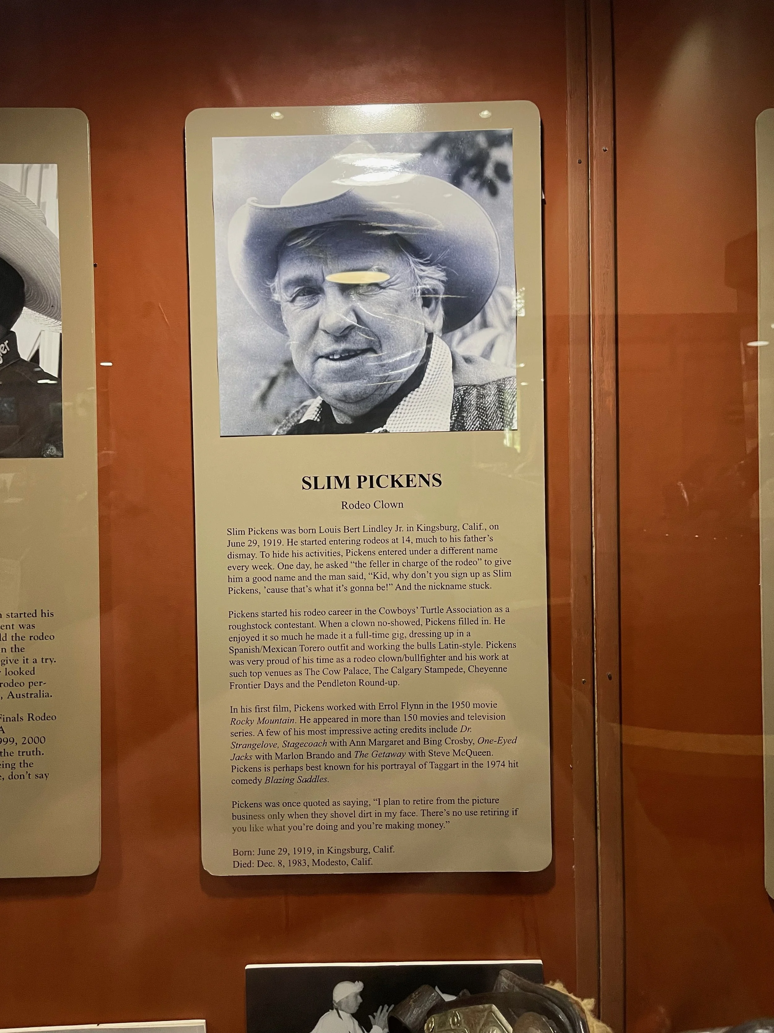 After the museum I headed north and arrived at the Pro Rodeo Hall of Fame and the American Cowboy Museum. I arrived just in time to see the video on the history of rodeo. It was very informative and entertaining. When we were in South Dakota we went to a regional rodeo and enjoyed it. Then in Tombstone we watched bull riding. Both venues were a lot of fun. Back home we have a local who sponsors a Pro Bull Riding (PBR) event. His name is Jerome Davis. I am hoping to get to more rodeo events once we are home. The museum and hall of fame is loaded with artifacts and explains the equipment and clothing cowboys wear and why. There is even some displays about Olympic events and ladies in rodeo. I thoroughly enjoyed my day but after all this walking I am ready to go home and sit down.