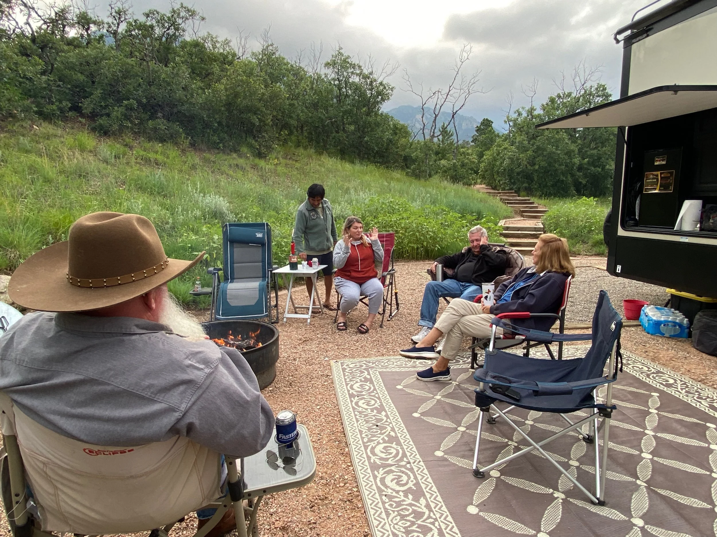 This afternoon we are going to go to Happy Hour as a last gathering before we leave on Monday. We went to Folklore’s Irish Pub in downtown Colorado Springs. Appetizers were half off and certain well drinks were half off also. We ordered a tater tot app with corned beef. It was unremarkable. I had to order a Guinness. What else does an Irishman order when at an Irish pub? After Happy Hour we left and decided to continue the party back home. We offered our campsite.