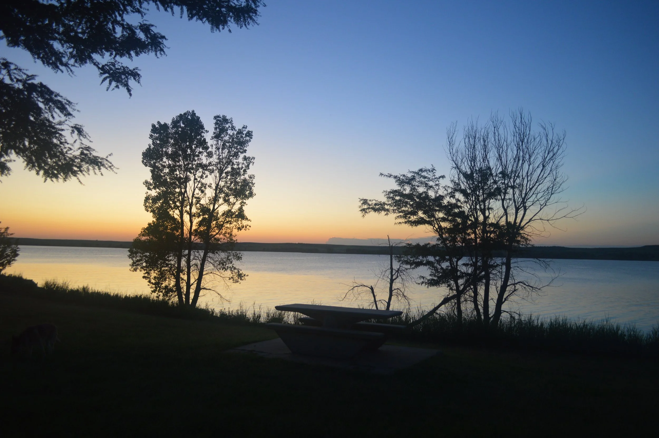 Travel day. We are heading to our first COE (Corp of Engineers) campground. We are going to Minooka Lake (Wilson Lake) in Kansas. Today is the longest drive day. We will be traveling about 7 hours. We had some challenges earlier in the morning. For some reason Trip Wizard started taking us on some questionable routes so I opted to just follow US 24 from Colorado Springs up to Interstate 70. Apparently I missed a couple of turns so I had to keep stopping to get my route straight. And on top of that, I kept getting a “Trailer Brake Disconnected” and “Check Trailer Wiring” warnings. The dinging was driving me nuts. I had just replaced the pigtail before we left Arizona and all was working well. We pulled up to a stoplight. I had the red and some time, so I shut the truck off and after a few seconds restarted it. So I basically rebooted the truck. It worked. No more problems. We pulled into the campground and they had a couple of very cool decorations at the entrance. The campsite was not a pull through but we do have water and electric (50 amp). That means we can run both air conditioners. Definitely need them as the temperature is around 90. Threat of severe thunderstorms for this evening.