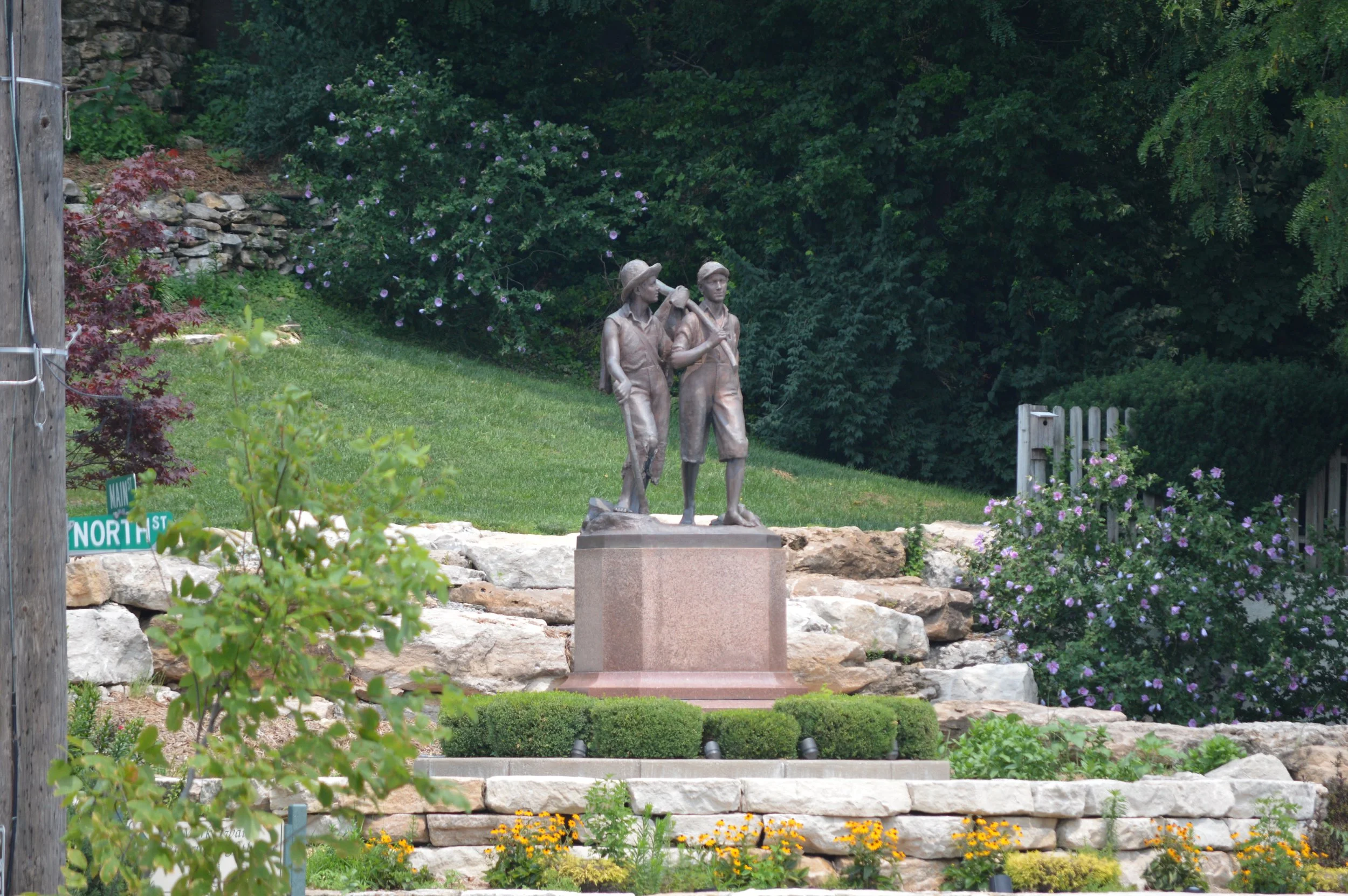 We started the day by taking the hour ride on the trolley of the Hannibal Tour Company. It was very interesting. Edward, our driver, told us about the history of Hannibal and some of its more famous residents. In addition to Samuel Clemens we saw the home of “The Unsinkable” Molly Brown (a Titanic survivor), Cliff Ukulele Ike Edwards (most noted as the voice of Jimny Cricket in Pinocchio. We saw the boyhood home of Mark Twain, and others that were inspiration for his books Tom Sawyer and Huck Finn. One very interesting fact was how Mark Twain got his pen name. It has to do with measuring the depth of the water. A knot was put into a rope every 6 feet or 1 fathom. As the crew reached a knot, they would yell “mark one” and the next one was “mark twain” 12 feet. This came from his days as a steamboat captain.