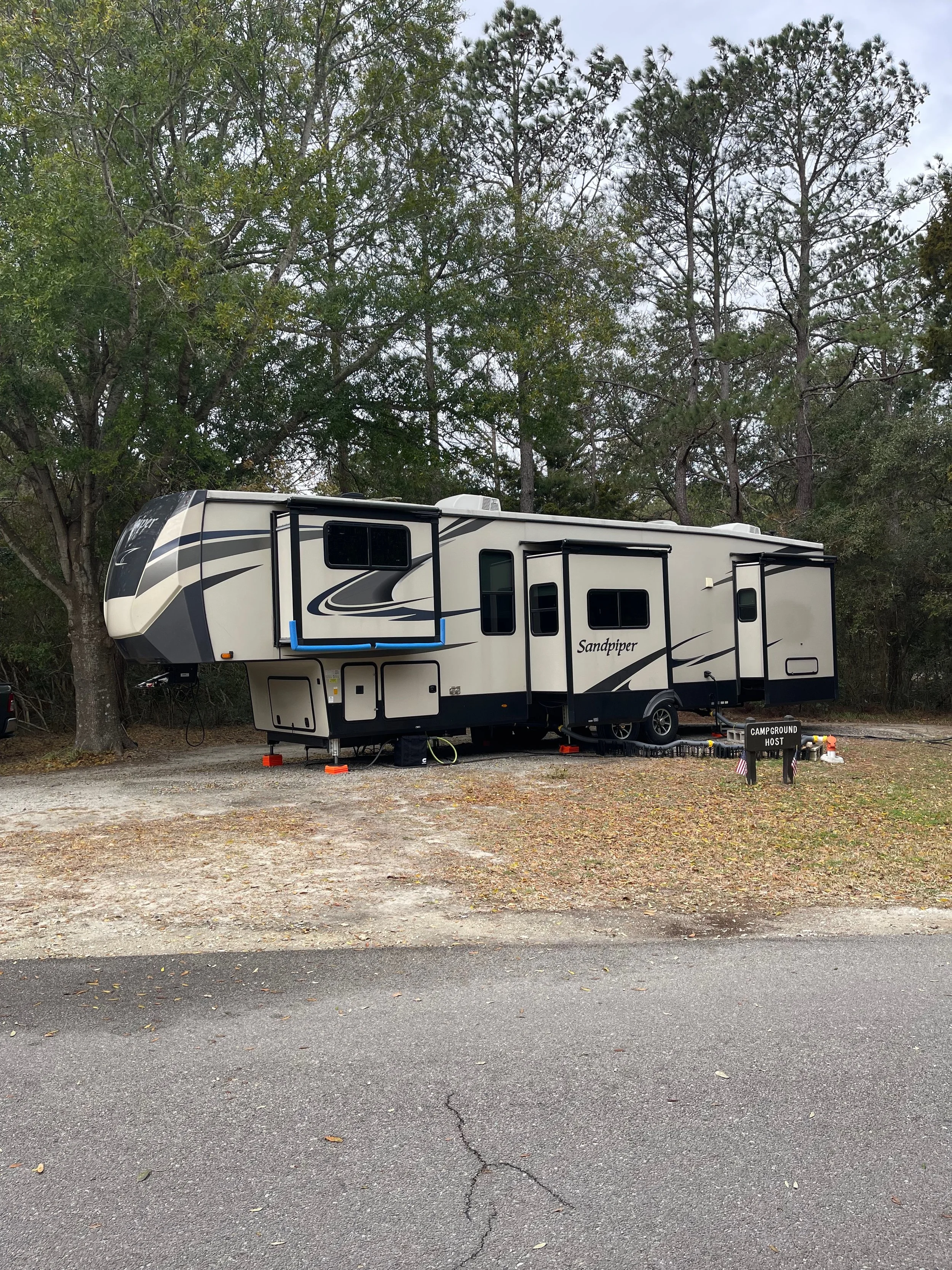 Today is our first travel day for the new year. We left the house about 10:30 ish. No big deal as we are only going to Murrell’s Inlet, South Carolina. It’s about 4 hours away. During the drive we encountered a few very light rain showers. No big deal. We arrived at Huntington Beach State Park and stopped at the office. We met with Chase, one of the Park Rangers. We signed our paperwork and received our packet. The packet contains our hang tag, our time sheet, our Safety Inspection Sheets, and our work schedule for the month. The Site Safety Inspections are to be done during the month we are here. There are 6 tent sites and 175 RV sites, less the 2 Host sites. Fortunately, we are at the same site we have been at the last 2 times. We are scheduled to work Thursdays thru Mondays. That leaves Mondays and Tuesdays for our off days. We got parked, set up, and had a nice hot shower. We have never had good WiFi. The WiFi is great within the immediate vicinity of the bathhouses. We even had spotty cell service when we were with AT&T. We recently switched to T-Mobile and when we were in Colorado, with no WiFi, we discovered the T-Mobile Internet. After leaving Colorado, we held on to the device and used it last September when we camped at Bandit’s Roost. We held onto it to test for this trip. I set it up and low and behold, it works great here. According to the device, we have a mediocre signal but when we connect it to our King WiFi Extender we are able to use our streaming services. It also allows me to work on this blog and to take my Sani Serv online exam. In the years past, we watched the same DVDs multiple times.